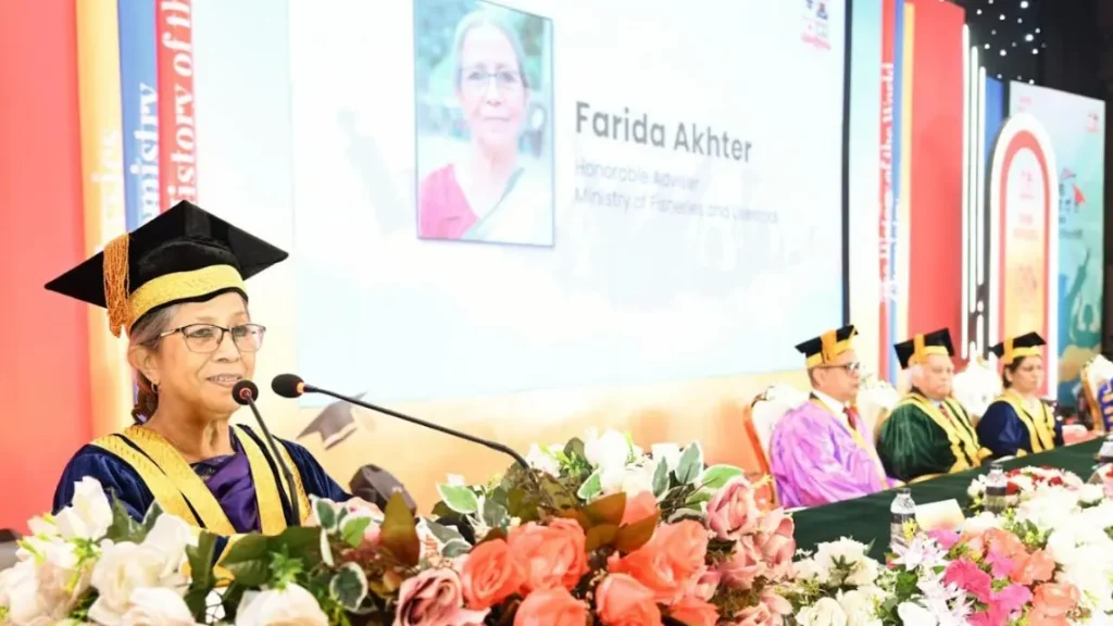 মৎস্য ও প্রাণিসম্পদ উপদেষ্টা ফরিদা আখতার বলেছেন, ডিগ্রি অর্জনই তরুণদের শেষ দায়িত্ব নয়। সমাজের একটি বড় অংশ এখনো উচ্চশিক্ষার সুযোগ থেকে বঞ্চিত থাকায় শিক্ষিত তরুণদের ওপর সমাজ পরিবর্তনের দায়িত্ব আরও বেশি।