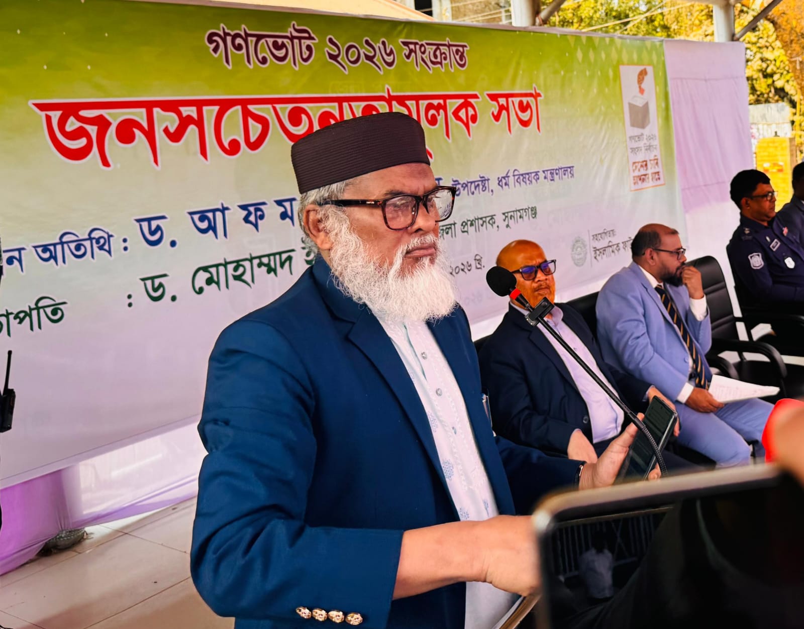 সভাপতিত্বে এ অনুষ্ঠানে অন্যান্যের মধ্যে পুলিশ সুপার এবিএম জাকির হোসেন, জেলা আনসার ও ভিডিপি অফিসের জেলা কমান্ড্যান্ট মোঃ সুজন মিয়া, জেলা নির্বাচন অফিসার মোহাম্মদ শুকুর মাহমুদ মিঞা ও ইসলামিক ফাউন্ডেশনের উপপরিচালক মোহাম্মদ মোশারফ হোসেন বক্তব্য প্রদান করেন। এসময় অন্যান্যের মধ্যে উপদেষ্টার একান্ত সচিব (যুগ্মসচিব) ছাদেক আহমদ উপস্থিত ছিলেন।