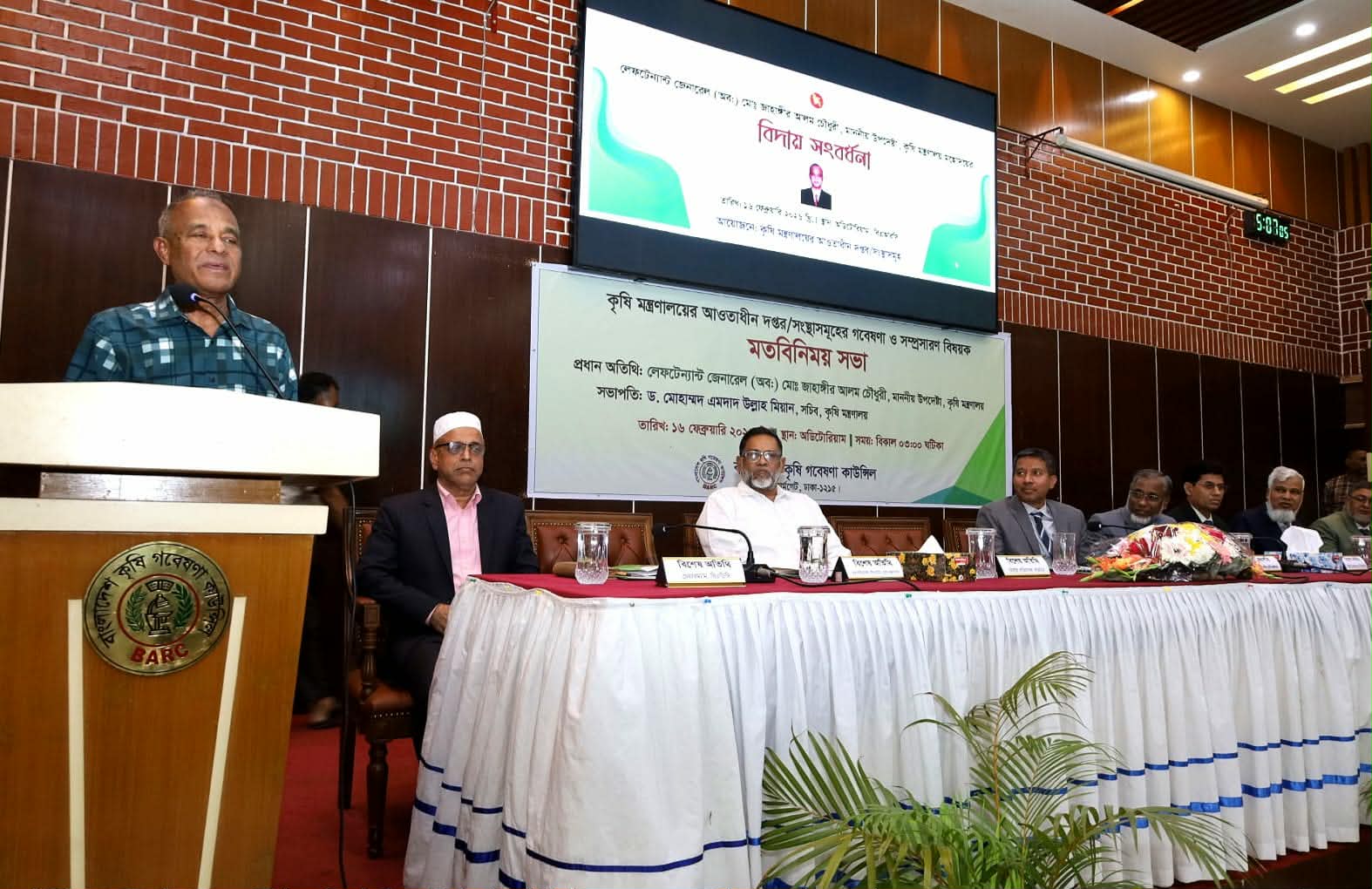 কৃষি সচিব ড. মোহাম্মদ এমদাদ উল্লাহ মিয়ানের সভাপতিত্বে বিদায় সংবর্ধনা অনুষ্ঠানে কৃষি মন্ত্রণালয়ের বিভিন্ন দপ্তর/সংস্থা প্রধানগণ বক্তব্য রাখেন