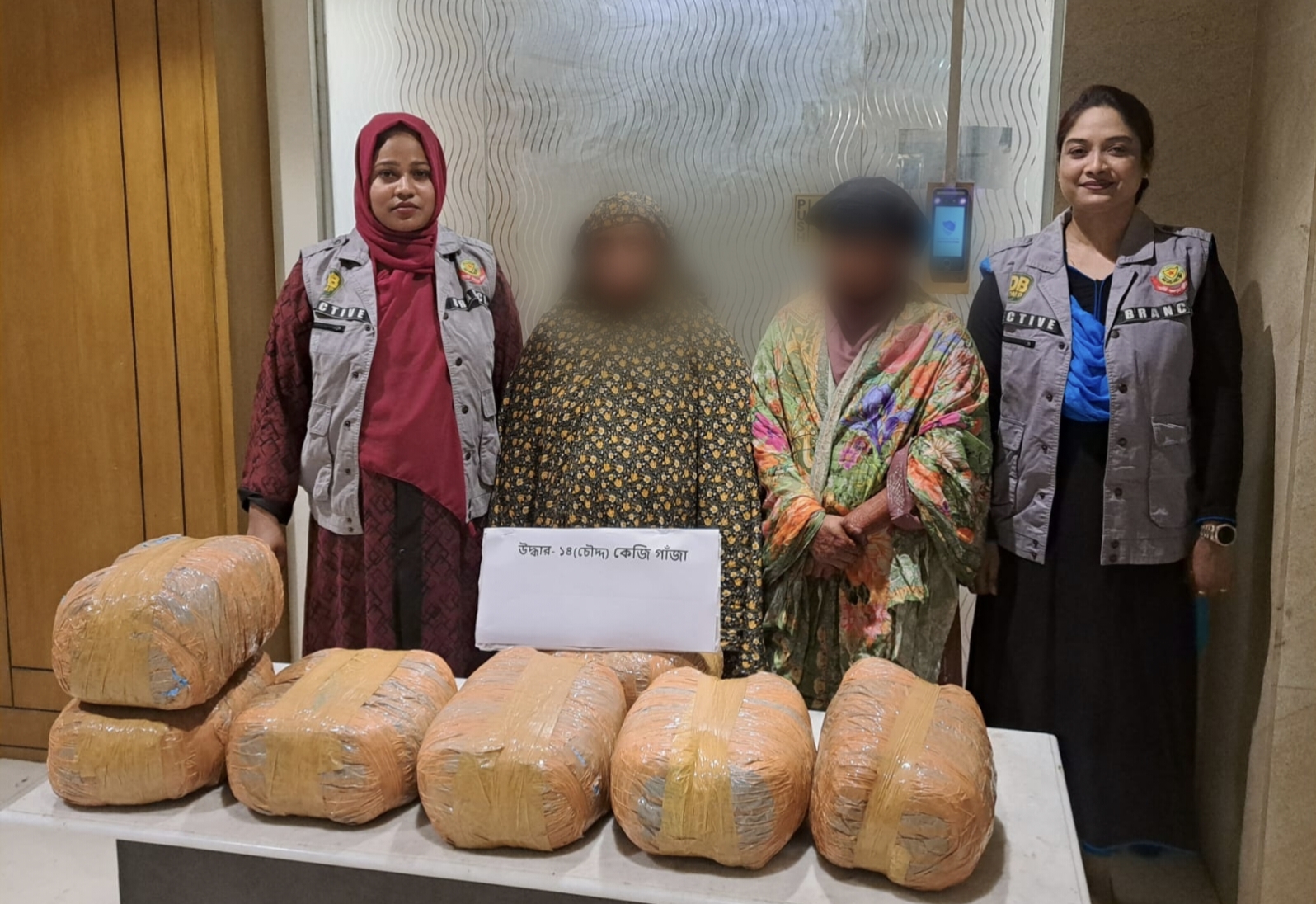 ১৪ কেজি গাঁজাসহ দুই নারী মাদক কারবারিকে গ্রেফতার করেছে ডিবি
