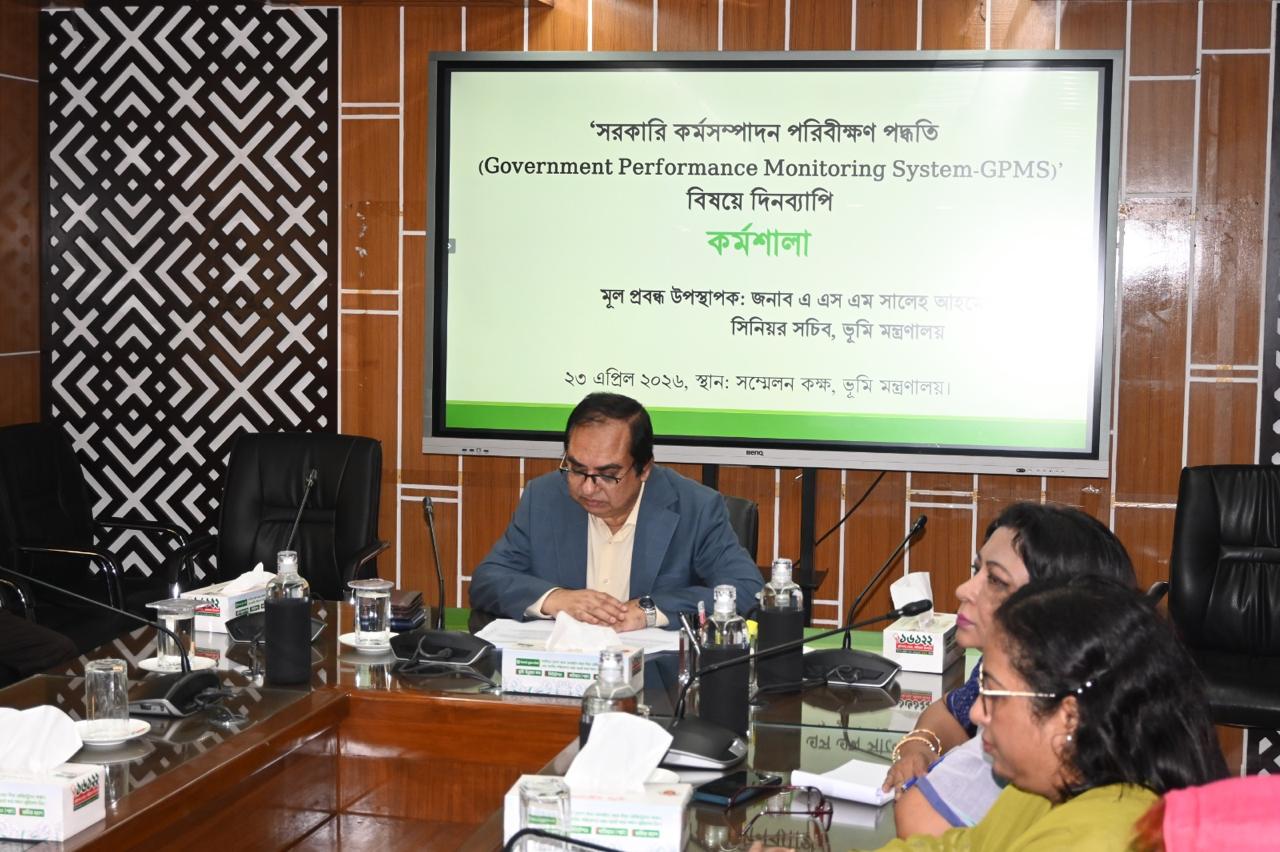 ভূমি মন্ত্রণালয়ের সভাকক্ষে আজকে আয়োজিত ‘সরকারি কর্মসম্পাদন পরিবীক্ষণ পদ্ধতি (GPMS)’শীর্ষক কর্মশালায় প্রধান অতিথির বক্তব্যে ভূমি মন্ত্রণালয়ের সিনিয়র সচিব এ এস এম সালেহ আহমেদ এসব কথা বলেন।