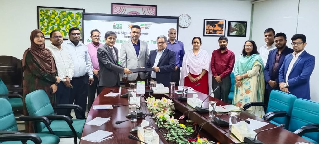 ক্ষুদ্র ও মাঝারি উদ্যোক্তা উন্নয়নে যৌথভাবে কাজ করতে সমঝোতা স্মারক স্বাক্ষর করেছে এসএমই ফাউন্ডেশন এবং বাংলাদেশ ফরেন ট্রেড ইনস্টিটিউট (বিএফটিআই)।